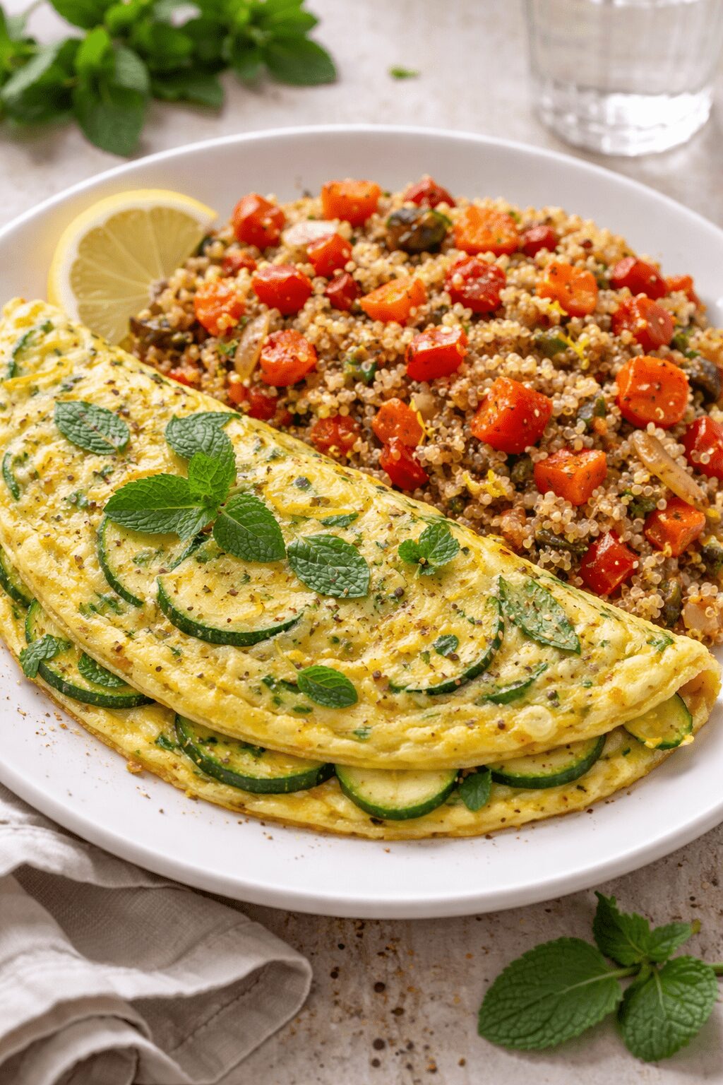 Omelette moelleuse aux courgettes et quinoa aux lé