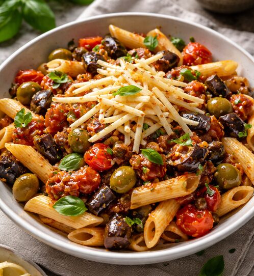 Pâtes à la Sicilienne, caponata provola fumé